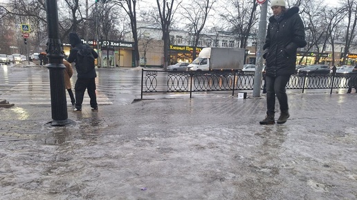 Казалось бы, идет потепление, и гололедица, от которой ростовчане страдают уже неделю (!), с прошлой субботы, постепенно растает. Но не тут-то было! С ночи зарядил ледяной дождь. А с утра люди падают на скользких тротуарах, машины заносит на дорогах: просто день травматолога и жестянщика в одном флаконе. — Вот уж действительно, настоящая пятница, 13-е! — сердятся ростовчане в городских пабликах. Рассказываем, что происходит на улицах Ростова-на-Дону в сильную гололедицу. — Скатывалась на площади...