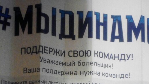 Спонсор питерского "Динамо" Газпром, на каждом кресле лежал раздаточный материал: плакатики - хлопушки...