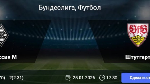 Боруссия М - Штутгарт: 19-й тур Бундеслига чемпионат Германии Статистика Боруссии Мёнхенгладбах: В шести из восьми последних матчей «Боруссии» в чемпионате как минимум одна из команд не забивала. На своем поле клуб не смог одержать победу в 10 из 12 предыдущих встреч в Бундеслиге (4 ничьи, 6 поражений). В шести из восьми последних домашних игр «Боруссии» в турнире было забито не менее трех мячей...