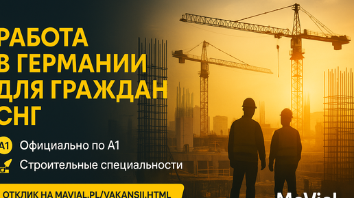 Германия остаётся одним из самых стабильных рынков для строителей: много долгих проектов, понятные правила и достойная оплата. Если вы гражданин одной из стран СНГ и уже находитесь в Польше (или планируете), самый быстрый и безопасный путь — официальная командировка по A1 через польскую компанию-работодателя. Именно так работает MaViAl: вы подписываете польский контракт, оформляете A1 и выезжаете на объект в Германию по правилам ЕС. MaViAl MaViAl Sp. z o.o. (Вроцлав) — прямой работодатель и подрядчик на строительных объектах в Германии...