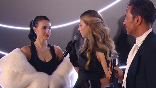 В шубе с бриллиантами фигуристка Алина Загитова. Интересно, в какой номинации мы её увидим.