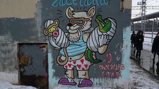 Всем запомнился талисман Евро 2018. Волк Забивака запомнился людям не только кок символ соревнований, но и как герой граффити. Я думаю все помнят "Залетаку", "Издеваку", "Заливаку". Нетрудно догадаться что все граффити имеют резко социальный характер. И многие из них посвящены злободневным проблемам или конкретным случаям. Например "Заливака" рассказывает нам о "правдивом" выступлении президента. Судить об этом конечно не нам. "Залетака" например посвящена конкретным историям. Во время проведения чемпионата некоторые наши граждане в поисках легких отношений прикидывались иностранцами...
