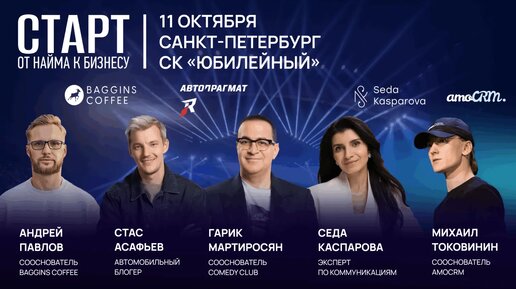11 октября в 11:00 в СК «Юбилейный» в Санкт-Петербурге состоится масштабная конференция «СТАРТ. ОТ НАЙМА К БИЗНЕСУ»