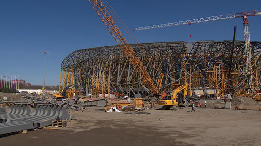 Финишная прямая. На парковочной зоне СКА Арены началась укладка дорожного покрытия. Восемь асфальтоукладчиков одновременно приступили к работе вокруг стадиона. Всего на этом участке будет уложено семь тысяч квадратных метров асфальта. Параллельно ведутся работы и по благоустройству парковой территории. Идет установка опор освещения, а в фестивальной части завершены работы по бетонированию амфитеатра на четыреста зрителей...