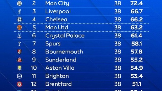 Прогноз Sky Sports на итоговую таблицу Премьер-Лиги в этом сезоне 📊