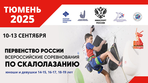 Вторая половина скалолазного сезона 2025 года стартует в Тюмени с 10 по 14 сентября. На комплексе скалодромов в легкоатлетическом манеже пройдут масштабные всероссийские соревнования и Первенство России по скалолазанию. В соревнованиях примут участие 387 спортсменов из 34 регионов страны разных возрастных категорий. Программа включает несколько крупных турниров, которые пройдут в течение пяти дней. Открывают серию состязаний Всероссийские соревнования по лазанию на скорость среди молодёжи в возрастных категориях 14-15, 16-17 и 18-19 лет...
