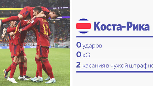 Это было слишком легко. Испания не заметила Коста-Рику – 7:0. Команда Луиса Энрике забила три мяча уже к 31-й минуте: повеселились Дани Ольмо, Марко Асенсио и Ферран Торрес (с пенальти). Во втором испанцы добили соперника мячами Мораты, Солера, Гави, а Ферран Торрес оформил дубль (у него 15 голов в 32 матчах за сборную). Сумасшедшие цифры победы. Болельщикам Коста-Рики лучше не смотреть Сначала изучим картинку, а затем пройдемся подробнее и выделим другие важные события. Любопытно, что голами стали именно первые семь испанских ударов в створ, восьмой взял Кейлор Навас уже при счете 0:7...