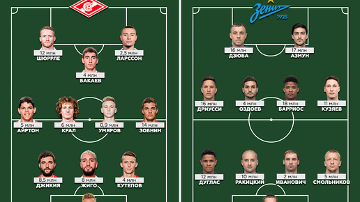 Сколько стоят футболисты «Зенита» и «Спартака»