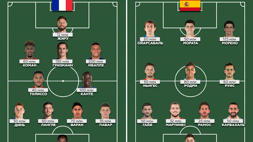 Сборная Франции – действующий чемпион мира. Команда победила в мундиале в 2018 году. До этого Франция выигрывала Кубок мира в 1998 году. Чаще Франции в международном турнире побеждали только Бразилия, Италия и Германия. Французы успешно выступают и на уровне Европы. Сборная Франции дважды выигрывала Евро: в 1984 и 2000 году. Больше побед в чемпионатах Европы одержали лишь испанцы и немцы. Сборная Испании выиграла три чемпионата Европы: в 1964, 2008 и 2012 годах. В Кубке мира испанцы победили один раз – в 2010 году...