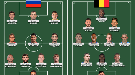 Сравнение стоимости составов сборных России и Бельгии
