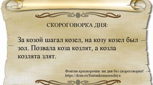 Скороговорка дня: за козой шагал козел, на козу козел был зол...