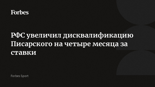 РФС увеличил дисквалификацию Писарского на четыре месяца за ставки
