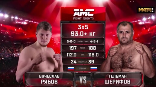 Накануне состоялся бой в рамках предновогоднего турнира организации смешанных единоборств AMC Fight Night, в котором наш земляк Вячеслав Рябов одержал победу над более опытным бойцом Тельманом Шарифовым...