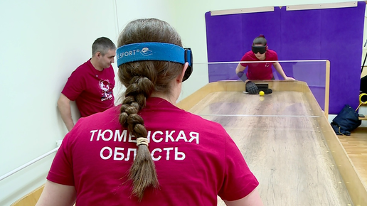 Этой осенью сборная Тюменской области по настольному теннису среди спортсменов с нарушением зрения отличилась дважды. Наши ребята стали лучшими на чемпионате России и выиграли Кубок президента Всероссийского общества слепых. И сейчас тюменцы готовятся к очередным соревнованиям. У каждого игрока черные очки и специальная перчатка - они защищают лицо и руку от удара. Цель - забить гол в ворота. Но техника броска - особенная. Похожа на аэрохоккей. Мяч, наполненный металлическими шариками, не скачет, а катится по столу с бортиками...