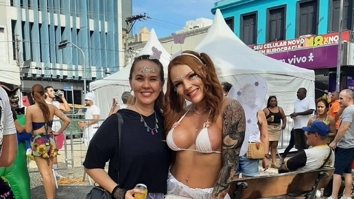 Приветствую, друзья. В субботу мы опять были на городском карнавале. Танцевали до упаду, но не упали. Когда на площади карнавал завершился, мы в другой район поехали. Там тоже карнавал был. В общем до ночи развлекались. Я Марина из Бразилии. Живу в штате Сан-Паулу, в городе Кампинас. Я замужем за бразильцем. Мужа зовут Элио. Я сегодня акцент на образах сделаю. Ну и расскажу, как Ана приз отхватила за свои танцы и наряд. В субботу в нескольких районах были карнавальные шествия. Мы выбрали центр города...