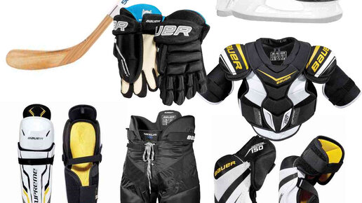 Хоккей - это очень травмоопасный вид спорта, и большая часть внимания уделяется именно экипировке . Хоккейная экипировка состоит из: 1) Клюшка для хоккея с шайбой — спортивный снаряд, при помощи которого спортсмены перемещают по площадке шайбу. Размер клюшки для хоккея примерно 150-200 см. 2) Коньки для хоккея с шайбой — ботинки с прикрепленными к ним металлическими лезвиями. Используются для передвижения по льду. 3) Раковина для защиты паховой области от попадания шайбы и других травм. 4) Шлем для защиты головы...