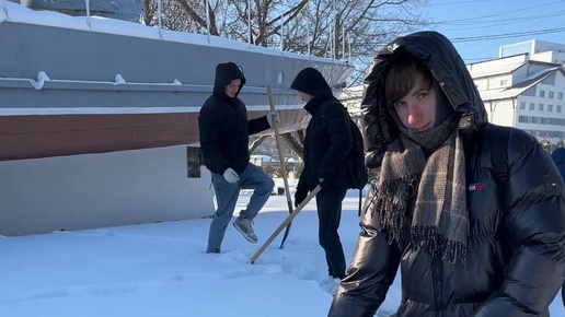🔄Волонтеры Пинского аграрного технологического колледжа очистили памятник бронекатера БК-92 и прилегающую к нему территорию от снега