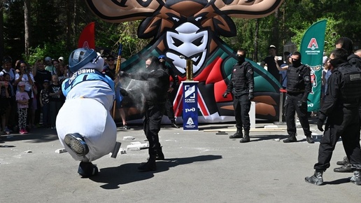 В Новосибирском зоопарке в рамках Фестиваля детства «Лови лето!» 1 июня прошли показательные выступления спецназа ГУФСИН России по Новосибирской области. Участие в них принял талисман ХК «Сибирь». Снеговик разбил рукой бетонный блок и вызвал бурю аплодисментов у зрителей. - Одним из самых зрелищных событий Фестиваля стало показательное выступление сотрудников отдела специального назначения (базового) «Корсар»...