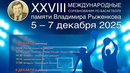 5– 7 декабря в Минске пройдут XXVIII Международные соревнования по баскетболу памяти Владимира Рыженкова Турнир состоится в зале спорткомплекса Республиканского государственного училища олимпийского резерва...