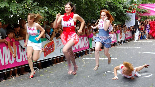 Лет десять назад удалось мне побывать на уникальных соревнованиях: девушки в платьях и на шпильках бегали на время в Москве рядом с ГУМом. Модно, весело, конечно, некоторые приходили с семьями, слов нет, но девчонок жалко - пара-тройка из них до финиша не дошла. Все-таки каблуки ведь совсем не для того, чтобы бегать. Каблук - дело тонкое, ноженька подвернуться может. Бедные детушки и муж... жалко мамку! Первыми до такого конкурса додумались в Амстердаме. Они там и не до такого додумались! 9 марта...