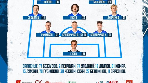 ⚡️ Наш состав на кубковый матч против «Динамо» (Санкт-Петербург) 🔹 В воротах — Гусев 🔹 Криворучко младший дебютирует за «Динамо» 🔹 Любченко справа, Пронин инсайд 🔹 Киреев и Шаболин на острие Вперёд,...