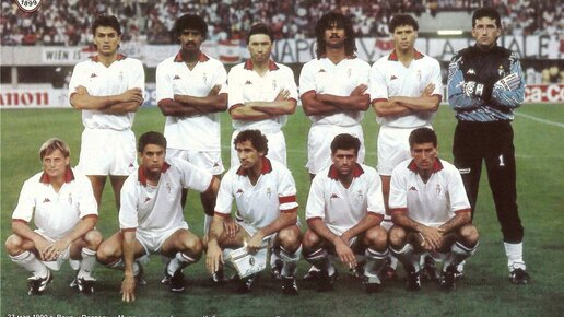 Доброго времени суток, любители футбола! Победитель Кубка европейских чемпионов 1988/89 «Милан» в том сезоне в чемпионате Италии финишировал третьим, никто не смог составить конкуренцию «Интеру». Перед своим третьим сезоном у руля «россонери» Арриго Сакки внес лишь небольшие корректировки в состав. Команду покинули седовласый нападающий Вирдис и не закрепившийся в основе защитник Мусси. Пришедший в команду Марко Симоне оставит о себе добрую память в команде, а полузащитник Диего Фузер впоследствии проведет лучшие свои годы в «Лацио» и «Парме»...