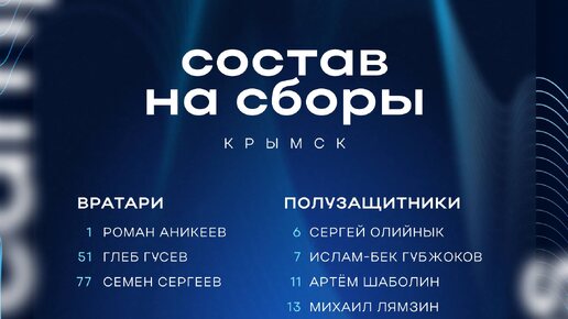 Состав «Динамо» Вологда на второй тренировочный сбор, который пройдет в Крымске