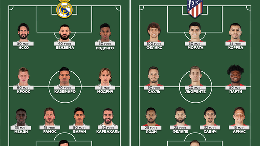 Сравнение стоимости составов «Реала» и «Атлетико»