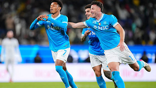 Суперкубок Италии, финал. 22 декабря. Эр-Рияд. Стадион "Аль-Авваль Парк". Судья - Андреа Коломбо (Комо). Наполи - Болонья - 2:0 (1:0). Голы: Нерес, 39 (1:0). Нерес, 57 (2:0). Статистика матча. Он-лайн трансляция. Несмотря на расширенный состав участников Суперкубка Италии, в финале сошлись команды, которые и должны были разыграть этот трофей — чемпион "Наполи" против обладателя Кубка страны "Болоньи". Неаполитанцы могли выйти вперёд после удара Эльмаса, но тот, получив пас в штрафной от Мактоминея, не попал в ближний угол...