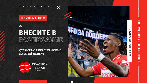 «Внесите в расписание». Где играют красно-белые на этой неделе: с 13 по 19 апреля 2026
