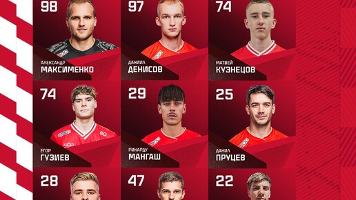 Стартовый состав Спартака на матч с Родиной