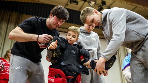 В школе №1409 прошёл Урок хоккея от «Спартака»! ХК «Спартак» Москва устроил большой детский праздник – в актовом зале столичной школы №1409