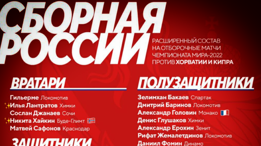 Список сборной России на решающие матчи отборов ЧМ-2022. Что не так выбором нападающих от Карпина?