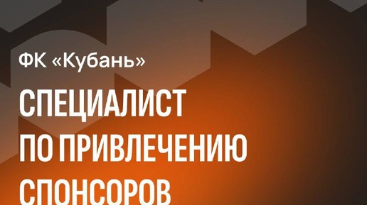 Футбольный клуб «Кубань» в поиске специалиста по привлечению спонсоров В 2018-м «Кубань» потеряла профессиональный статус: за несколько лет до этого краснодарский клуб играл в Лиге Европы. Болельщики и бывшие игроки выкупили название и эмблему команды, чтобы продолжить выступать в чемпионате Краснодарского края. Сейчас неравнодушные к «Кубани» люди ищут пути для возвращения профессионального статуса одного из старейших клубов юга России. Чем нужно будет заниматься: — проведение анализа рынка, целевых...