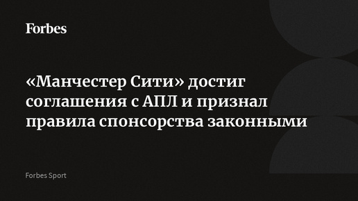 «Английская премьер-лига и футбольный клуб «Манчестер Сити» достигли соглашения по арбитражному разбирательству, начатому клубом ранее в этом году в отношении правил по сделкам с ассоциированными сторонами (APT), и в результате стороны согласились прекратить разбирательство», — говорится в заявлении клуба. Отмечается, что в рамках этого соглашения «Манчестер Сити» признает, что действующий регламент APT является действительным и обязательным. Было согласовано, что ни АПЛ, ни клуб не будут давать дальнейших комментариев по этому вопросу...