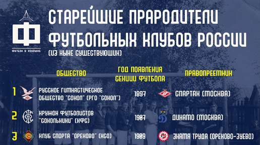 ПЯТЬ СТАРЕЙШИХ СПОРТИВНЫХ ОБЩЕСТВ РОССИИ, ИЗ КОТОРЫХ ПОЯВИЛИСЬ ФУТБОЛЬНЫЕ КЛУБЫ, КОТОРЫЕ СУЩЕСТВУЮТ И НЫНЕ...