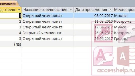 БАЗА ДАННЫХ ACCESS СОРЕВНОВАНИЯ СПОРТ