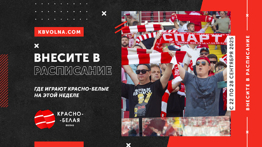 «Внесите в расписание». Где играют красно-белые на этой неделе: с 22 по 28 сентября 2025 года.