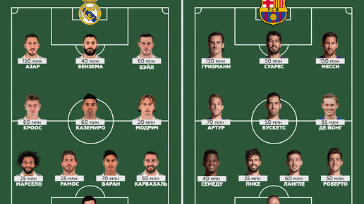 Сравнение стоимости составов «Реала» и «Барселоны»
