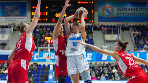 В субботу, 21 октября, баскетболистки курского «Динамо» одержали волевую домашнюю победу в регулярном чемпионате женской премьер-лиги и единолично возглавили турнирную таблицу. Виктория над МБА из Москвы стала для команды Игоря Грачева пятой подряд с начала сезона. ЖЕНСКАЯ ПРЕМЬЕР-ЛИГА. 21 ОКТЯБРЯ «ДИНАМО» (Курск) – МБА (Москва) – 77:69 (17:22, 21:19, 16:15, 23:13) «Динамо»: ШТАНЬКО – 15, Буровая, Шабанова – по 12, Амукамара – 11. Счет открыла Елизавета Шабанова. Однако экс-динамовки Ольга Фролкина и Валентина Кожухарь вывели МБА вперед – 2:4...