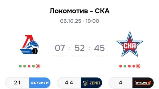 Интересных футбольных матчей сегодня нет совсем. Но мы нашли топовую хоккейную битву: Локомотив vs СКА 🏒 Давайте рассмотрим тренды на эту игру ✅ Тотал больше 4.5 шайб ТБ 4.5 шайб сыграл в 5 очных матчах этих команд подряд (КХЛ) ТБ 4.5 шайб сыграл в 10 из 11 последних матчей команды Локомотив (КХЛ) ✅ Фора СКА +1...