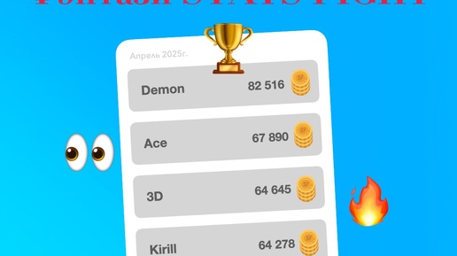 🏆 Лидеры месяца в Stats Fight! Спасибо всем, кто весь апрель показывал класс в прогнозах, стратегии и точности! 📈 И у нас отличные новости — мы увеличили призовой фонд для лучших игроков: 🥇 За 1 место — 100 000 монет 🥈 За...