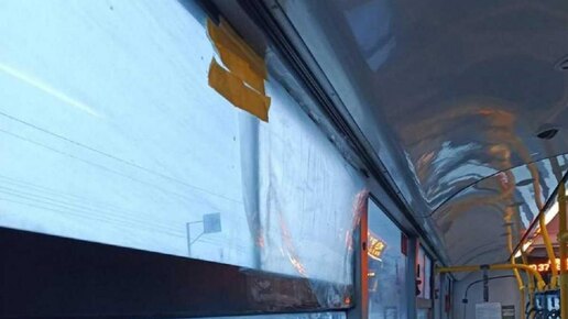 В омском автобусе № 67 вместо стекла натянули плёнку