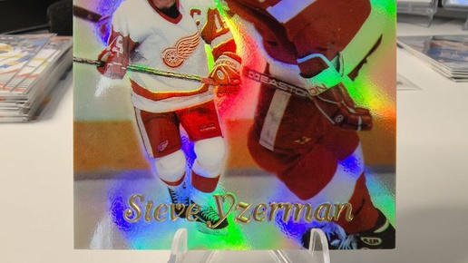 🔴 Карта дня — Steve Yzerman | Topps Gold Label 2000 Иногда карта говорит за себя. Перед нами — легенда Detroit Red Wings, капитан на все времена — Стив Айзерман. Коллекция — Topps Gold Label 2000, последняя в этой эффектной серии. Именно в ней Topps довела визуальный стиль до пика: глянцевая поверхность, радужные переливы, двойной портрет, позолоченное имя. Всё говорит: перед тобой классика. Это Class 1 — базовый уровень, но даже он выглядит как премиум. А если ещё вспомнить, что: Айзерман отыграл...