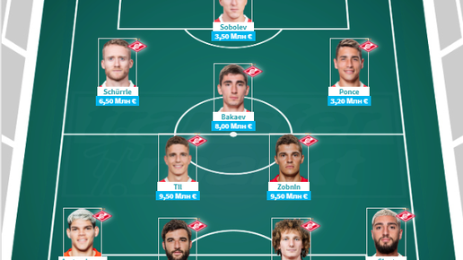 Трансферная стоимость игроков Спартак (Москва)
