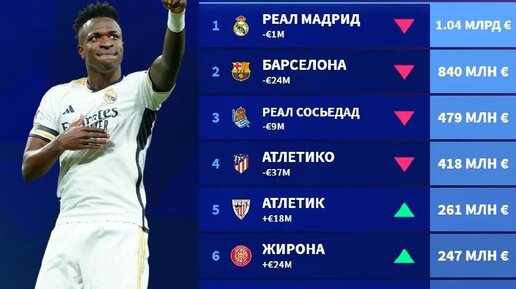 Руководство высшего дивизиона чемпионата Испании по футболу (Ла Лига) распределило между клубами 1,29 млрд евро от продажи телеправ за сезон 2024/25. Это немного меньше показателя предыдущего сезона, когда доходы команд первого дивизиона составили 1,35 млрд евро. Всего между клубами Ла Лиги и Сегунды (второй дивизион) было распределено 1,432 млрд евро против 1,498 млрд евро сезоном ранее. Согласно правилам Ла Лиги, в первом дивизионе 50% всех средств, вырученных от продажи ТВ-прав, распределяются поровну между 20 клубами...