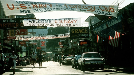 В 1986-1987 годах Уокинг-стрит в Паттайе оживала как никогда, когда в порт заходили корабли ВМС США! Яркие рукописные баннеры и вывески сверкали над дверями баров и клубов, заманивая моряков в сердце ночной тусовки Южной Паттайи. Улица бурлила энергией, толпы гудели на каждом шагу! В Fantasy Club приветствовали: "С возвращением, флот США! Смотрите муай-тай и флоор-шоу!" Клуб миксовал тайский бокс с шоу, погружая гостей в культуру и неоновый хаос ночи. Рядом, в отеле Diamond Beach, манил VIP-массаж:...