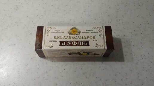 На своем канале я уже размещал обзор о чизкейке марки Б. Ю. Александров и сырке в молочном шоколаде. Интересные продукты. Если интересно почитайте по ссылке. Сегодня я попробую суфле и напишу опишу свои впечатления. Полностью продукт называется сырок глазированный "Суфле" в темном шоколаде с ванилью "Б. Ю. Александров". Цена: 35 рублей. Масса: 40 грамм. Производитель: ООО "РостАгроКомплекс", Московская обл., Пушкинский район, шоссе Братовщина-Ельдигино, 6 км. Состав Патока крахмальная, творог, шоколад темный (какао тертое, сахар-песок...
