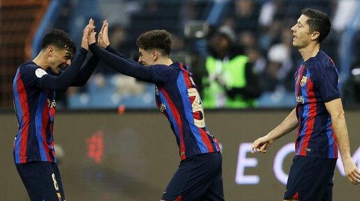 «Барселона» победила мадридский «Реал» в финальном матче Суперкубка Испании по футболу. Встреча, прошедшая на стадионе «Кинг Фахд Интернешнл» в Эр‑Рияде, завершилась победой «сине‑гранатовых» со счетом 3:1. В составе каталонской команды мячи забили Гави, Роберт Левандовский и Педри. Также в активе 18‑летнего Гави две результативные передачи. У «Реала» отличился Карим Бензема. «Барселона» выиграла первый трофей под руководством Хави, который возглавил клуб в ноябре 2021 года...