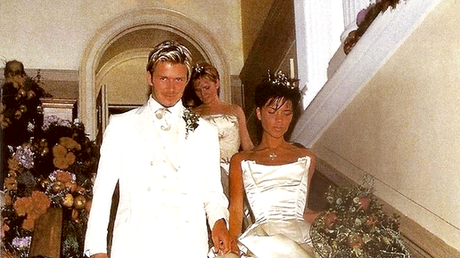 Результатом этого союза футбола и шоу-бизнеса стали двадцать лет брака, четверо детей и многомиллионное состояние. Посмотрим с чего всё начиналось, какой была свадьба Виктории и Дэвида Бекхэмов, и каким было платье невесты? Эта история началась в конце 90-х годов, когда продюсер группы "Spice Girls" решил, что одной из девушек не помешал бы роман с популярным парнем, желательно футболистом. Кто-то передал ему, что Дэвиду Бекхэму из "Манчестер Юнайтед" нравится брюнетка из группы. После одного из футбольных матчей продюсер устроил встречу Дэвида и Виктории Адамс (её девичья фамилия)...